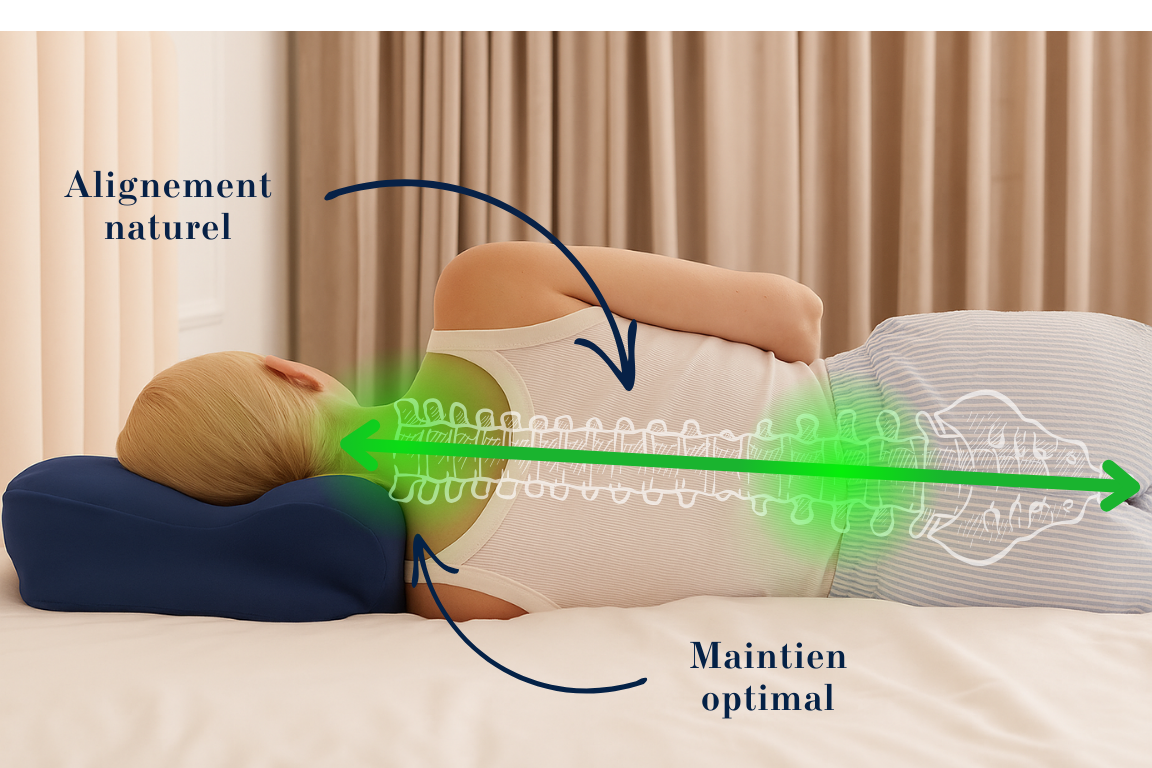 Un oreiller mal adapté peut désaligner votre nuque, comprimer vos vertèbres et créer des douleurs invisibles… qui se ressentent dès le matin.